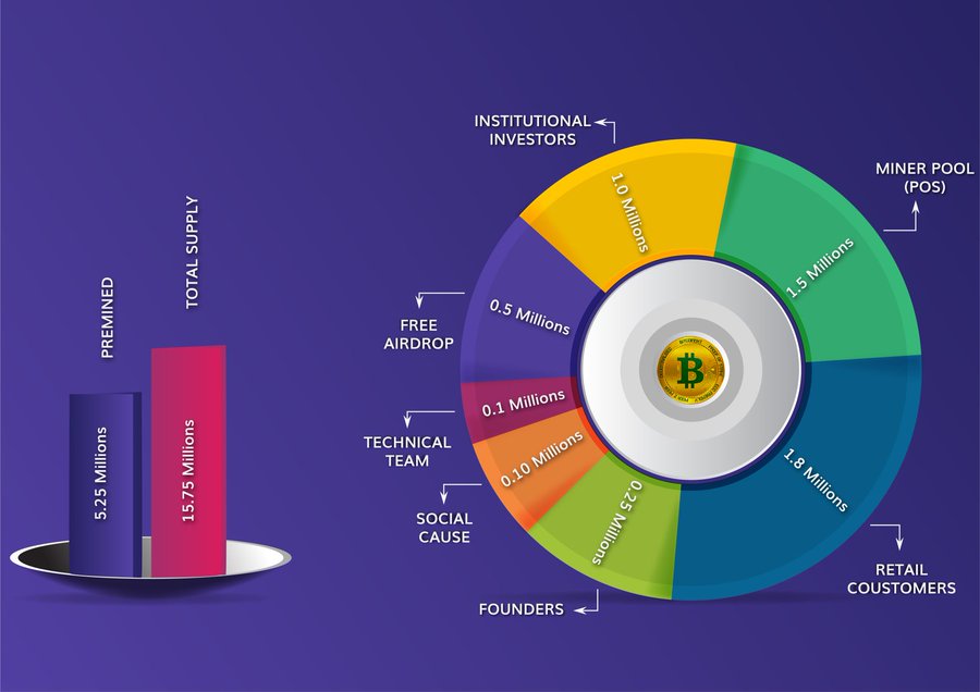 Bitcoin Nxt has a total supply of 21 million out of which there are 5.25 million pre-mined BTCNXT for the various purpose of development and promotional activities. The rest 15.75 million to be mined over time with the POS algorithm. Below is a glimpse of the distribution of pre-mined Bitcoin Nxt.